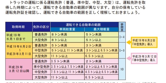 街中で見かける大型トラックや中型トラックを運転する際には、